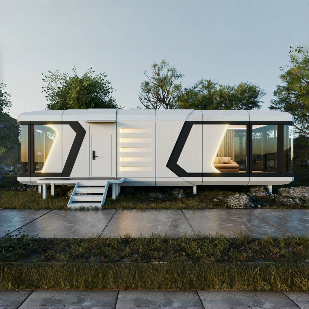 Capsule House R11t is a modern space pod designed for premium living. Featuring one bedroom, one living room, one bathroom, and one toilet, it offers a spacious and comfortable environment. The well-planned interior ensures ample space in the living areas, with a large bathroom and bedroom enhancing comfort. The balcony provides additional outdoor space, making it ideal for relaxation. R11t is perfect for both long-term residence and upscale vacation needs.