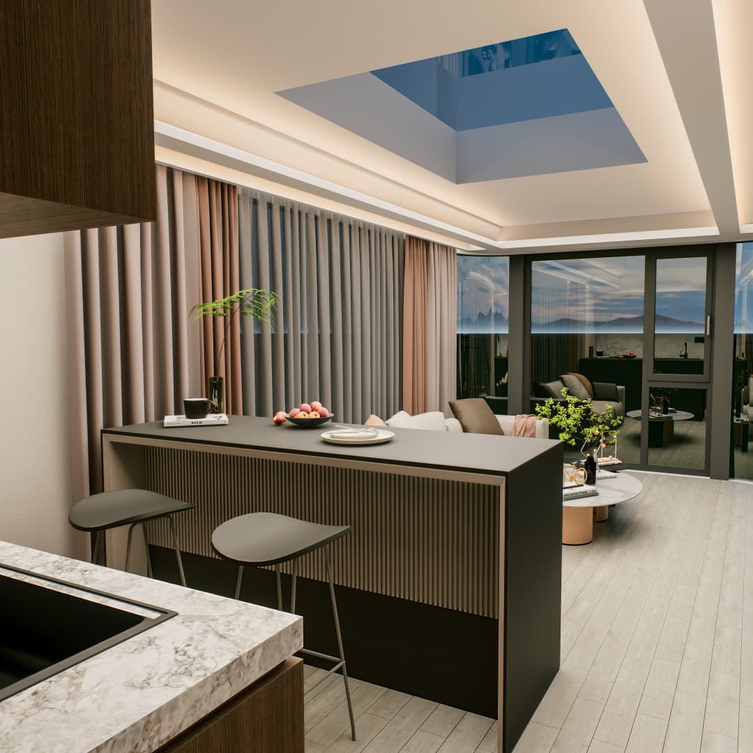 Layout & Functions | One bedroom, one living room, one bathroom, and one toilet; includes sleeping area, bathroom, toilet, washbasin, and basic living functions. Advanced features include automatic home control, smart sensor lighting, whole-house voice control system, electric voice-controlled curtains, photovoltaic power generation system, and wind power generation system. |